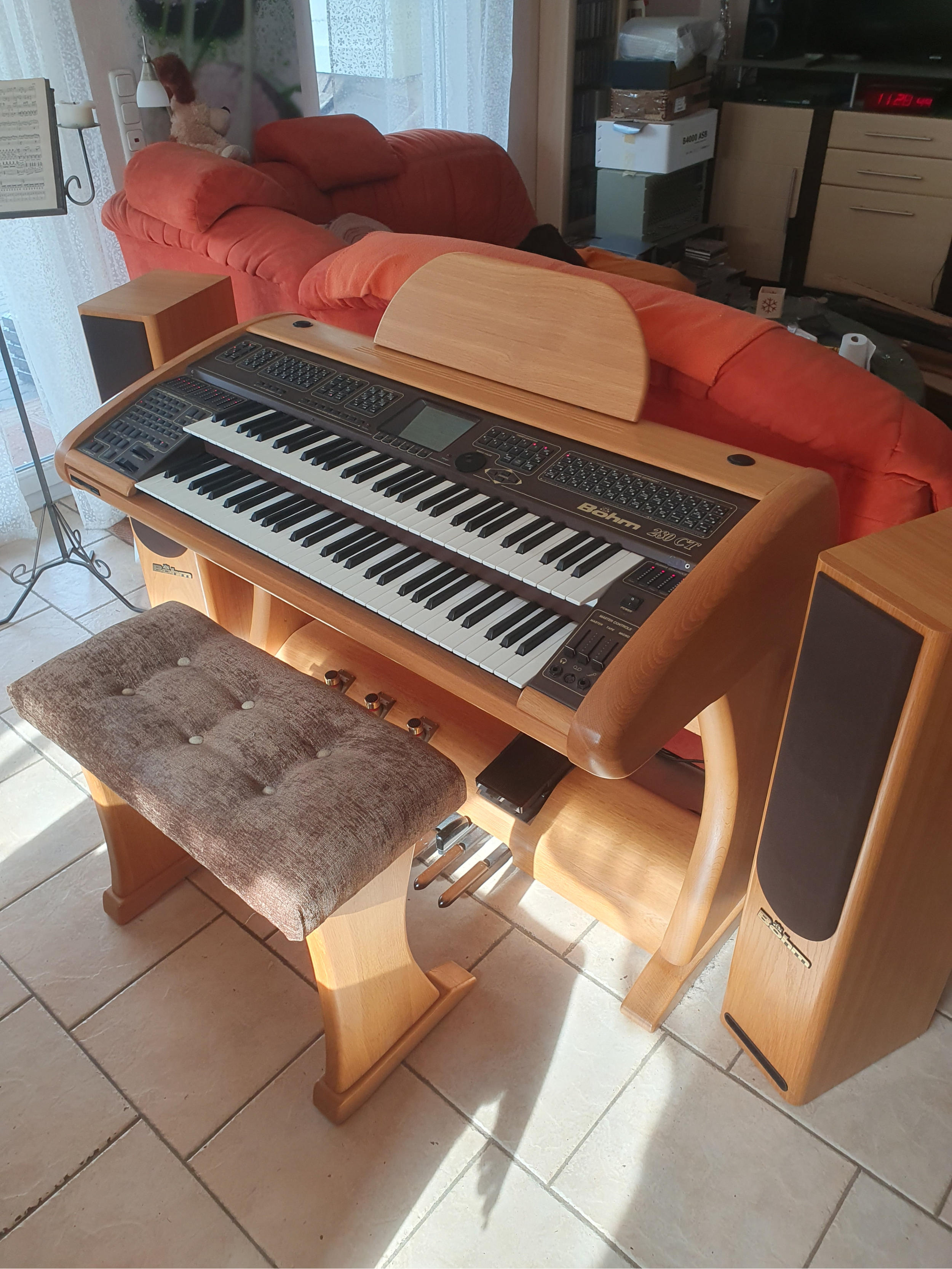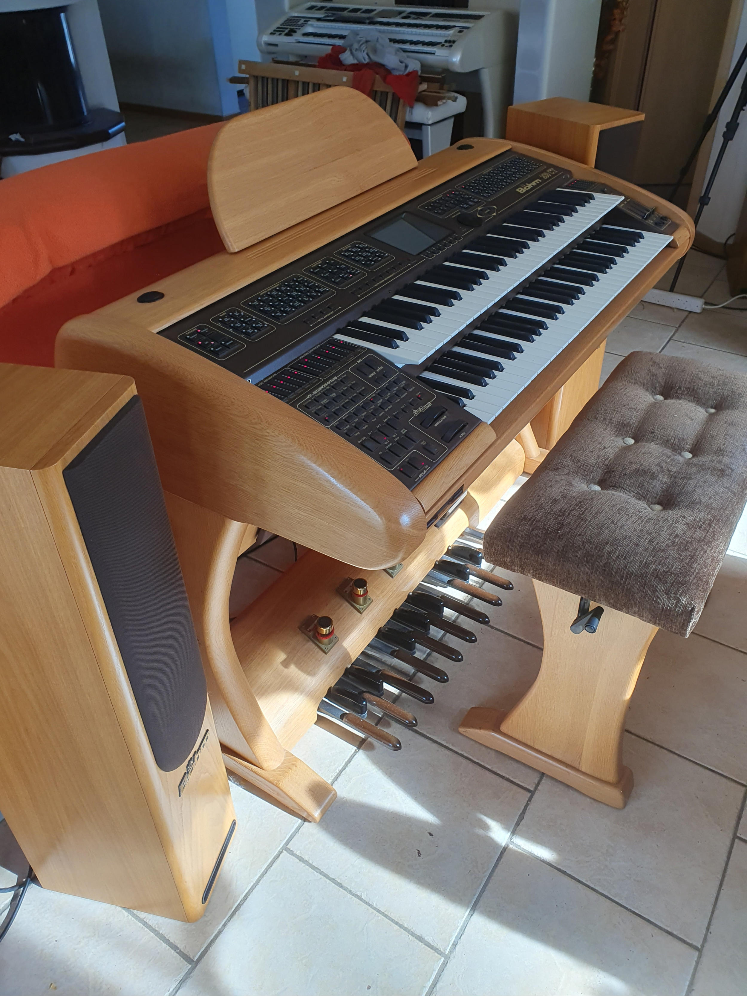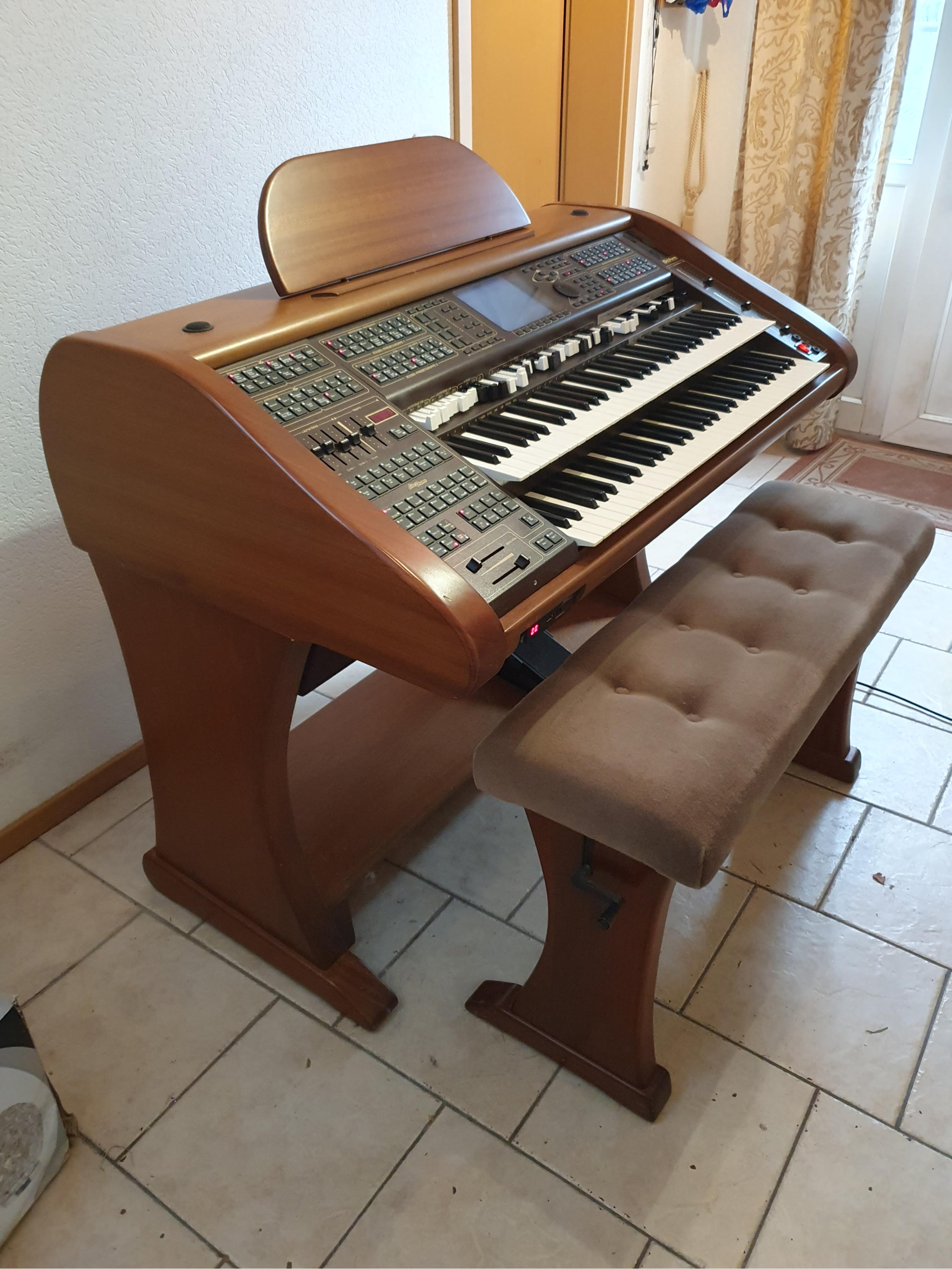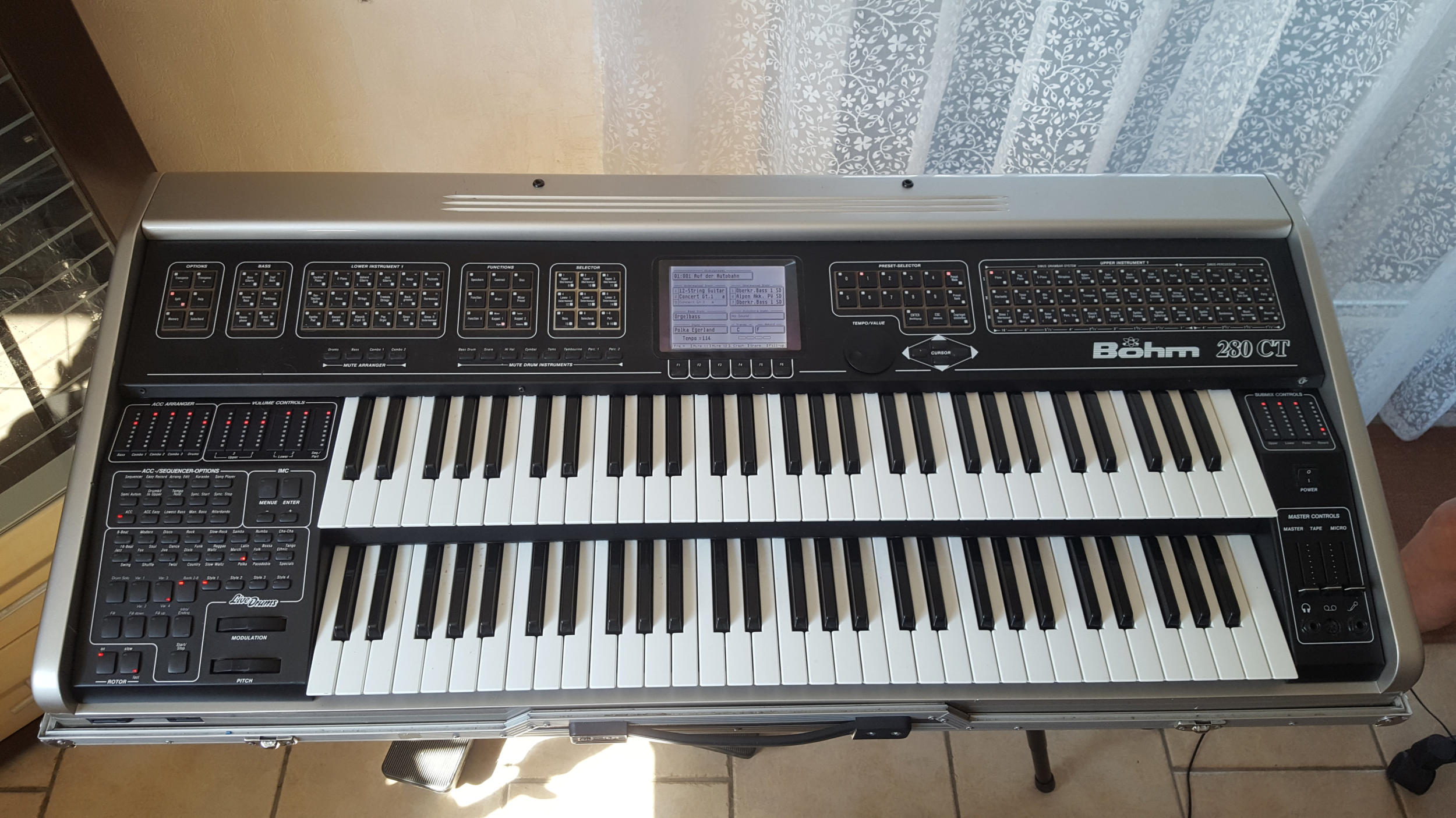 -- Gehäuse einer ehemaligen Overture M3, komplett überarbeitet, keine sichtbaren Holzschäden!-- Farbe etwa Kirsche mittel-- Mit Einhängebox und Hochtöner im Oberteil-- Vier programmierbare Pistons (Fußschalter)-- Pedalbeleuchtung-- Stecksystem zwischen Ober- und Unterteil-- Wahlweise (preisabhängig) mit 25-Tasten-Vollpedal, 25-Tasten-Stummelpedal 17-Tasten-Stummelpedal, kein Pedal-- Sitzbank (Breite abhängig vom Pedal), höhenverstellbar-- Fußschweller mit zwei programmierbaren Tastern-- Verstärker 2 x 60 Watt-- Zwei Soundsysteme „Amadeus Pro“ mit Parterweiterung 2 (plus 4) Parts im Obermanual, 8 Parts im Mittelmanual, 8 Parts im Untermanual, 3 Parts im Pedal, plus SoloChord und Midi-Parts-- Real-Organ mit Orgeltypen Sempra, Böhm-Vintage, Wersi-Vintage, American-- DSP-Erweiterung (8 Effektkanäle)-- Soundcontroller-- Karaoke (Lyrics-Funktionen)-- Style-Editor-- SideLine-- Arpeggiator (Templates Bank 1)-- D-Mix-Rotor-- Stylepakete: Amadeus Style-Performance 1 und 2 Star-Collection 1 und 2 StyleBox 1 und 2-- ViVa-Style-Performance (VSP) 2.0 SE-- Sonderausstattung: Presetanwahl „plus“ und „minus“ links unten auf dem Seitenbrett -- Großes Notenpult (vier DinA 4-Seiten) mit Bedienfeldbeleuchtung. Siehe auch unter „Eigene Projekte“