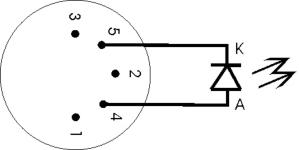 Es gibt eine einfache Möglichkeit, Midi-Signale auf ihr Vorhandensein zu überprüfen. Eine Midi-Anschluß ist eine optische Schnittstelle. An jedem Midieingang befindet sich zum sogenannten "Entkoppeln", so der Fachausdruck dafür, ein Optokoppler, der die Midisignale elektrisch vom Sender entkoppelt, so dass es keine Anschluß/Übertragungsprobleme geben kann. Das bedeutet: 1.Licht da/blinkt = Signal kommt an2.Licht nicht da = Kein SignalDa in einem Koppler von außen unsichtbar eine Leuchtdiode arbeitet, kann man diese mit Hilfe eines kleinen Prüfgerätes nach außen sichtbar machen, und damit eine Midi-OUT-Buchse als auch das verwendete Midikabel testen.So ein Prüfgerät wollen wir uns anfertigen. Dazu benötigen wir eine fünf-polige Din-(NF)Kupplung, die Sie in jedem gutsortierten Radiogeschäft oder Elektronikversender bekommen.Zerlegen Sie die Kupplung in Ihre Einzelteile und schneiden Sie die Knicksicherung mit einem scharfen Messer ab, so dass ein ca. 5 mm großes Loch an dem Kunststoffgehäuse sichtbar ist, wo eigentlich das angelötete Kabel herauskommt. Die Pins (Buchsenlöcher) dieser Kupplung sind nach Norm wie folgt gekennzeichnet, wenn man diese von der Kabelseite (Lötseite) her betrachtet:Löten Sie eine 5 mm rote "low-current" – LED" (Stromverbrauch 2 mA) über die Pins 4 und 5, so dass sich der lange Anschlussdraht (Anode) an Pin 4, der kurze (Kathode) an Pin 5 befindet. Die Drahtenden lassen Sie so lang, das die LED an der Tüllenöffnung für das Kabel herausschauen kann. Optimal wäre es, wie auf dem Bild zu sehen, einen Spiegeleinsatz für LED's zu verwenden, um das Licht der LED zusätzlich zu verstärken. Dazu das Kabelloch groß genug schneiden.Nun bauen Sie die Kupplung wieder zusammen.Diese Kupplung stecken Sie nun auf ein Midi-Kabel, während das andere Ende des Kabels in eine Midi-OUT-Buchse gesteckt wird.Wenn ein Midi-Signal vorhanden ist, z.B. durch Druck auf eine Manualtaste, wird die LED in der Prüfkupplung deutlich sichtbar zu blinken beginnen. Sollten Sie keine Kupplung bekommen, geht der Aufbau auch mit einer fünfpoligen Einbaubuchse, auf deren Lötösen die LED gelötet wird. Das sieht nur nicht so professional aus, erfüllt aber den gleichen Zweck.
