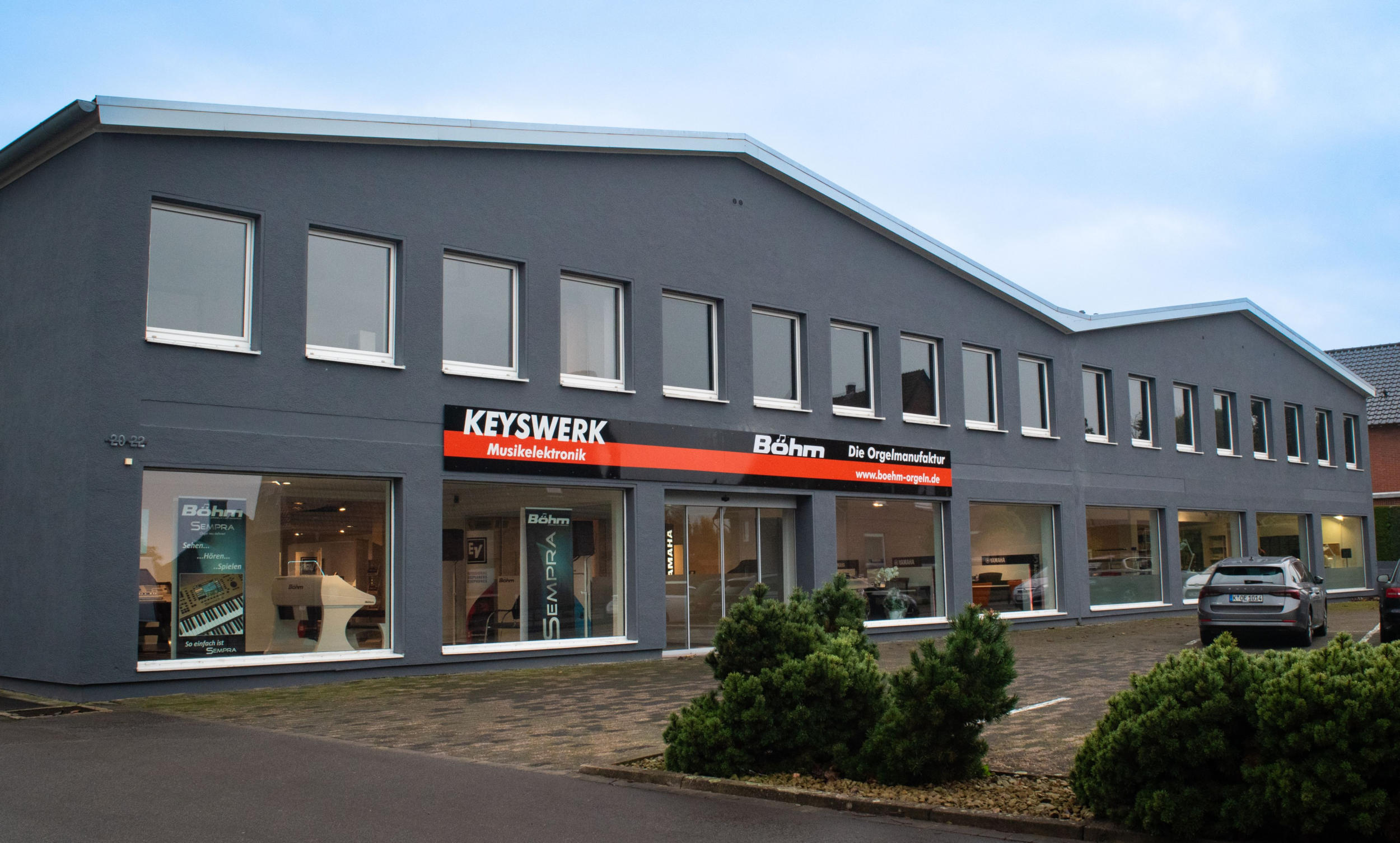 Die Firma Keyswerk (Böhm-Orgeln) hat ihren Firmensitz verlegt zur Sülbecker Straße 20-22 in 31688 Nienstädt. Ich möchte Sie einladen, virtuell die neuen Firmenräume kennen zu lernen.Deutschlands Orgelpionier expandiert! Die neue Welt der Musik auf über 1.100 qm ist eröffnet! Besuchen Sie die Firma und lassen Sie sich von den neuen Räumlichkeiten begeistern! Hier werden Ihnen die BÖHM SEMPRA Orgeln und Keyboards so präsentiert, wie diese fantastischen Premium-Instrumente es verdient haben. Außerdem sind dort antestbereit: Digitalpianos und Keyboards (bis zur Top-Klasse) des Marktführers YAMAHA. Gern wird Ihnen auch gezeigt, wie Sie Ihr Instrument mit den Aktiv-Monitoren von YAMAHA ergänzen können und wie fantastisch Ihre Musik über die High-End PA-Systeme von Electrovoice/Dynacord oder Firma Nubert erklingen kann.