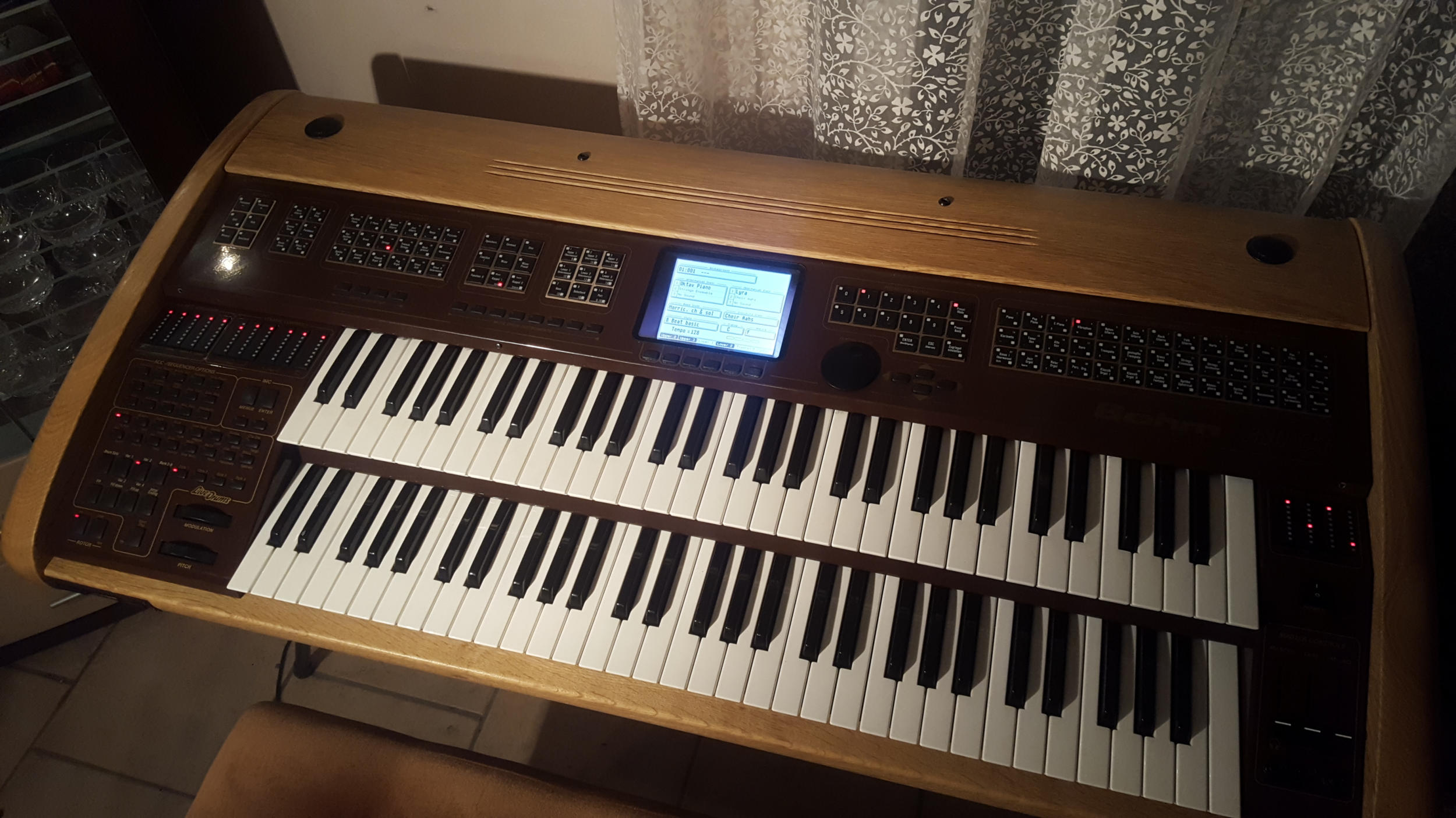-- Gehäuse einer ehemaligen Overture M3, komplett überarbeitet, keine sichtbaren Holzschäden!-- Farbe etwa Kirsche mittel-- Mit Einhängebox und Hochtöner im Oberteil-- Vier programmierbare Pistons (Fußschalter)-- Pedalbeleuchtung-- Stecksystem zwischen Ober- und Unterteil-- Wahlweise (preisabhängig) mit 25-Tasten-Vollpedal, 25-Tasten-Stummelpedal 17-Tasten-Stummelpedal, kein Pedal-- Sitzbank (Breite abhängig vom Pedal), höhenverstellbar-- Fußschweller mit zwei programmierbaren Tastern-- Verstärker 2 x 60 Watt-- Zwei Soundsysteme „Amadeus Pro“ mit Parterweiterung 2 (plus 4) Parts im Obermanual, 8 Parts im Mittelmanual, 8 Parts im Untermanual, 3 Parts im Pedal, plus SoloChord und Midi-Parts-- Real-Organ mit Orgeltypen Sempra, Böhm-Vintage, Wersi-Vintage, American-- DSP-Erweiterung (8 Effektkanäle)-- Soundcontroller-- Karaoke (Lyrics-Funktionen)-- Style-Editor-- SideLine-- Arpeggiator (Templates Bank 1)-- D-Mix-Rotor-- Stylepakete: Amadeus Style-Performance 1 und 2 Star-Collection 1 und 2 StyleBox 1 und 2-- ViVa-Style-Performance (VSP) 2.0 SE-- Sonderausstattung: Presetanwahl „plus“ und „minus“ links unten auf dem Seitenbrett -- Großes Notenpult (vier DinA 4-Seiten) mit Bedienfeldbeleuchtung. Siehe auch unter „Eigene Projekte“